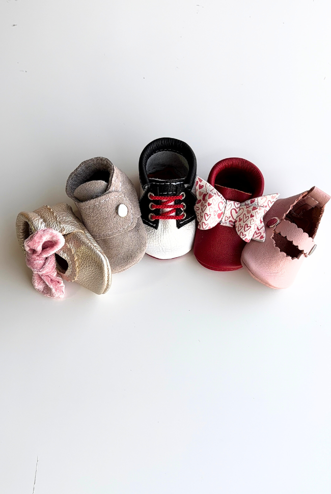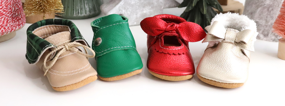 Our sizing goes by inches of your baby's foot, NOT by traditional sizes! Please measure your baby's foot from heel to big toe and order the size closest to that measurement.