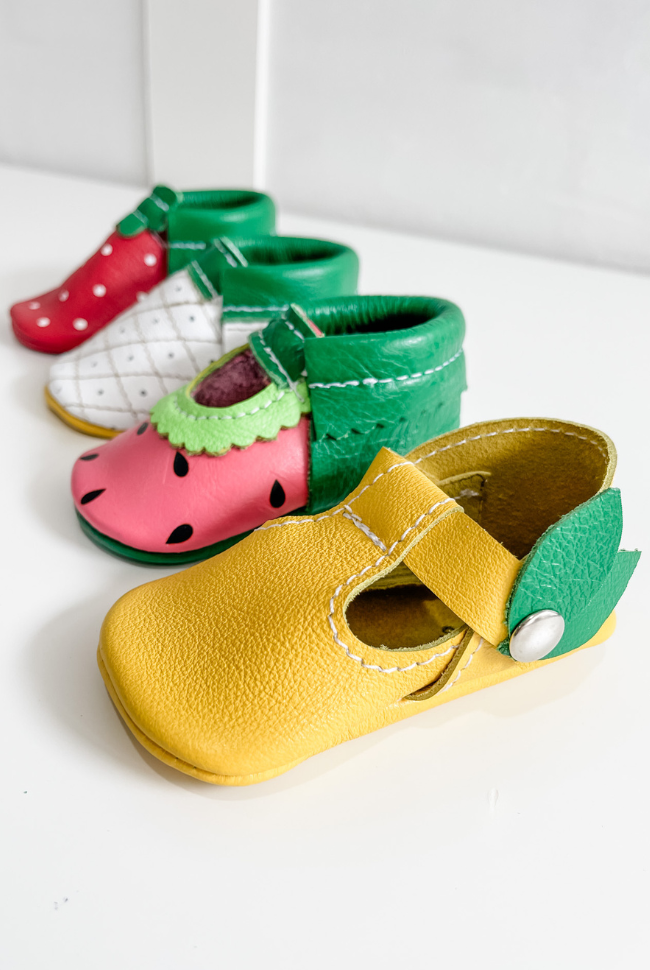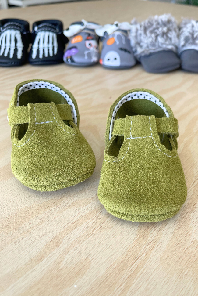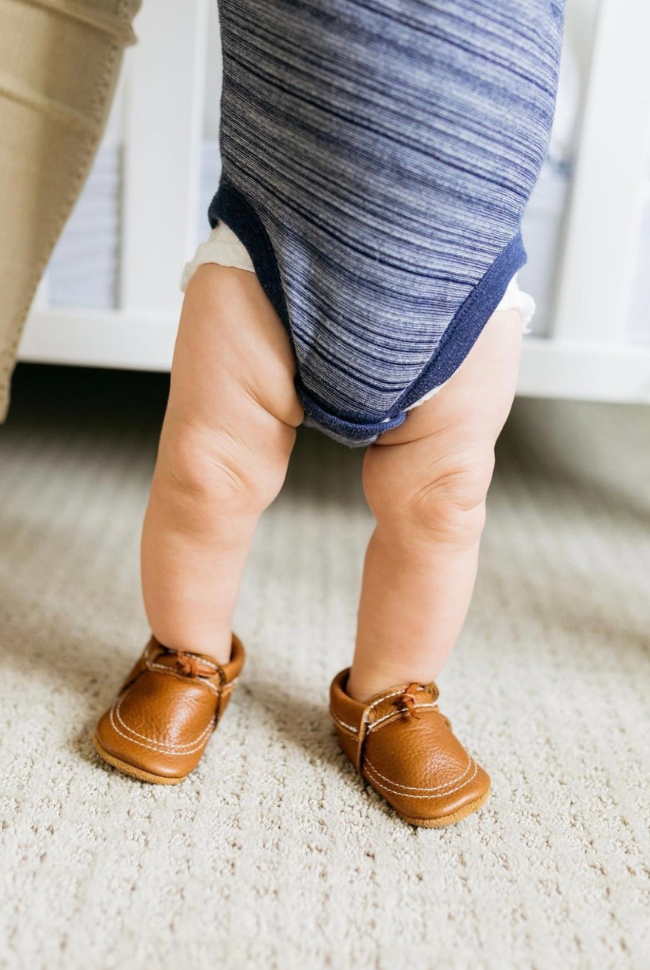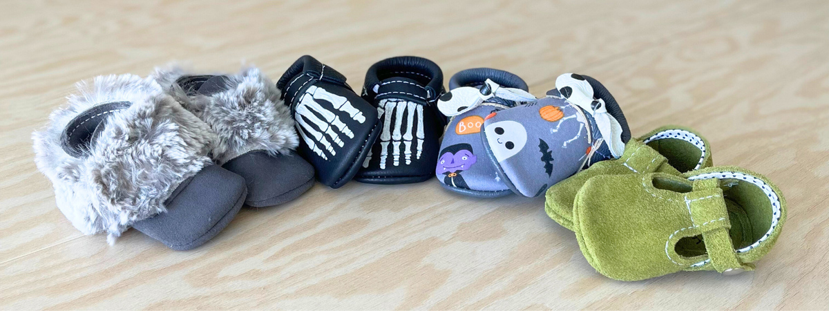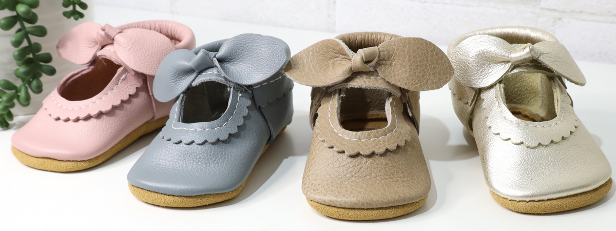 Our sizing goes by inches of your baby's foot, NOT by traditional sizes! Please measure your baby's foot from heel to big toe and order the size closest to that measurement.